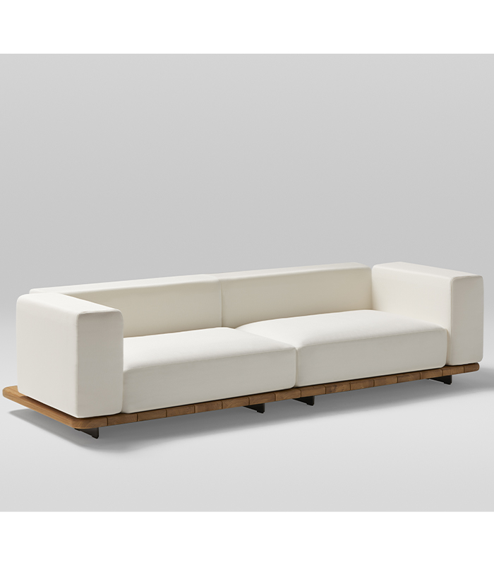 Divano Pal con base in tek di grado A proveniente da foreste gestite in modo sostenibile in Indonesia. Gambe in alluminio epossidico laccato color Grigio metallizzato 56. Cuscino della seduta in poliuretano espanso da 35 kg ad alta resistenza. I cuscini sono sempre dotati di copricuscino impermeabile. Il tessuto per i copricuscini può essere scelto dalla variabile tessuto quando si configura il prodotto sul sito. È anche possibile acquistare i cuscini senza tessuto o con il proprio tessuto.