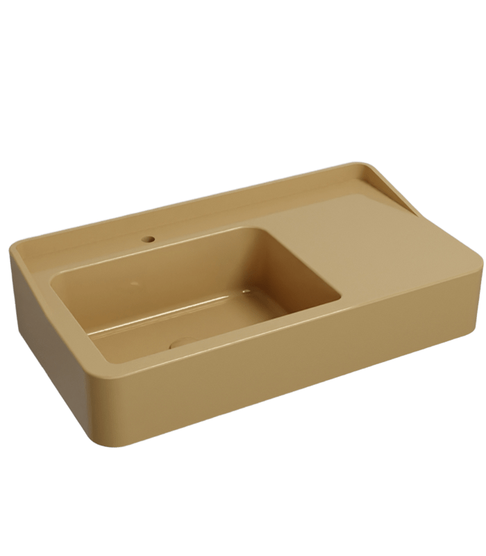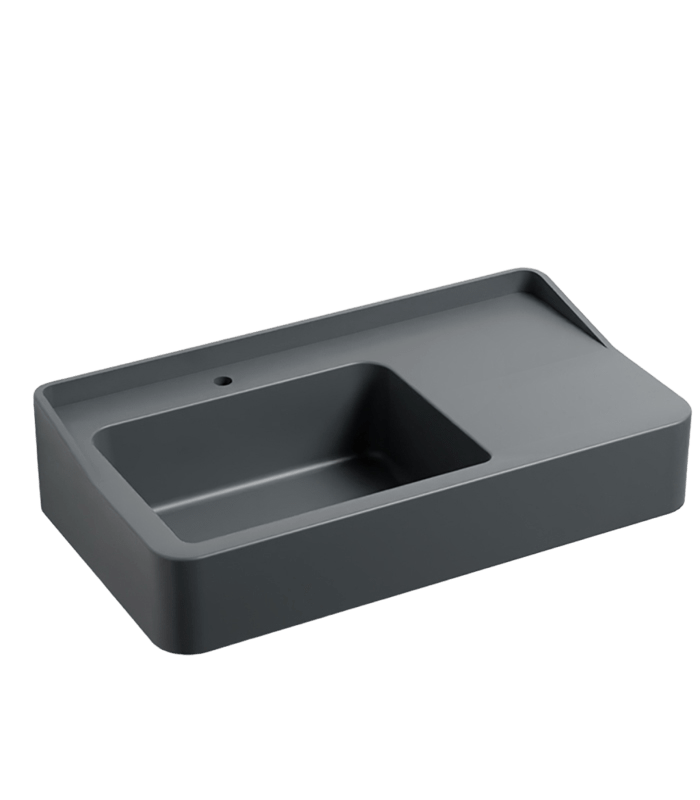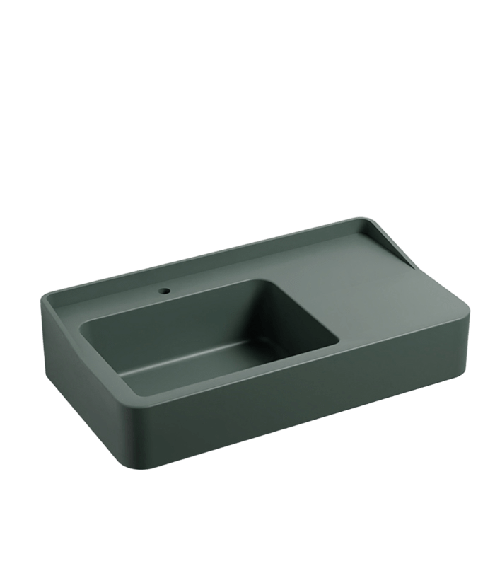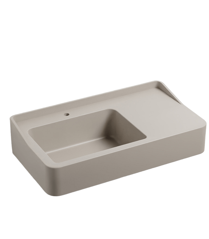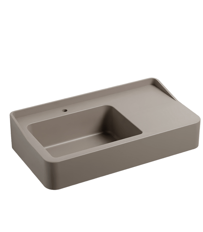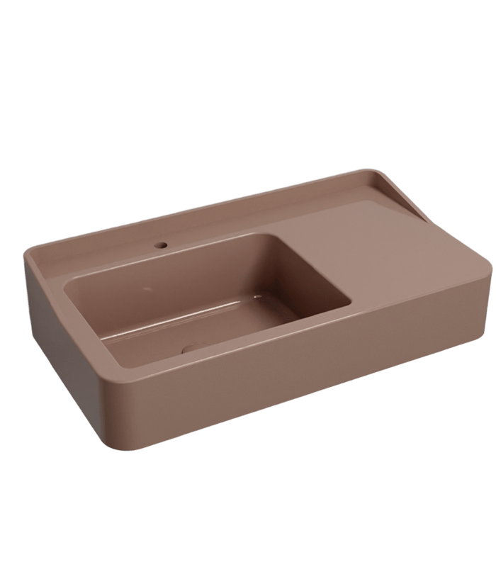 Lavabo in ceramica monoforo dalle molteplici finiture, disponibile nelle finiture laccate de “Le Terre di Cielo” o rivestiti da pregiate essenze naturali.